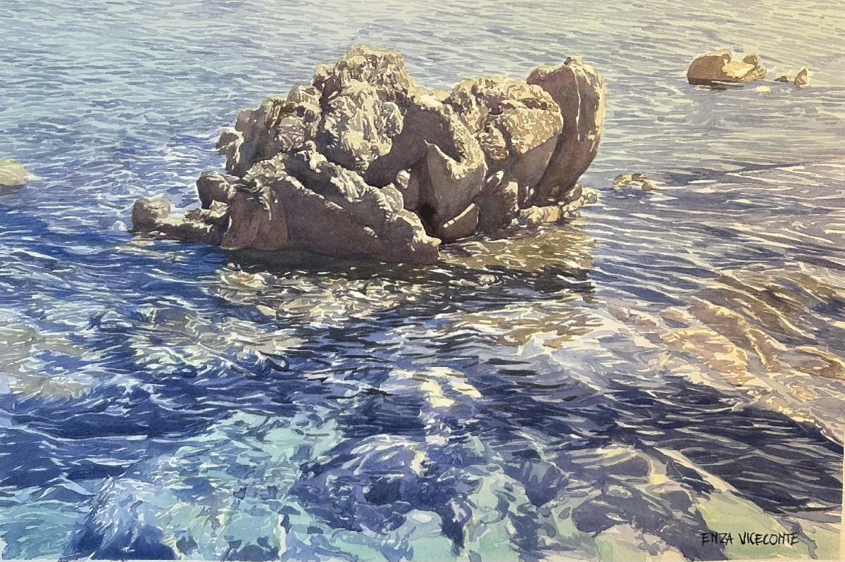 La pittura segue il ritmo del mare, cercando un equilibrio fragile tra permanenza e movimento.