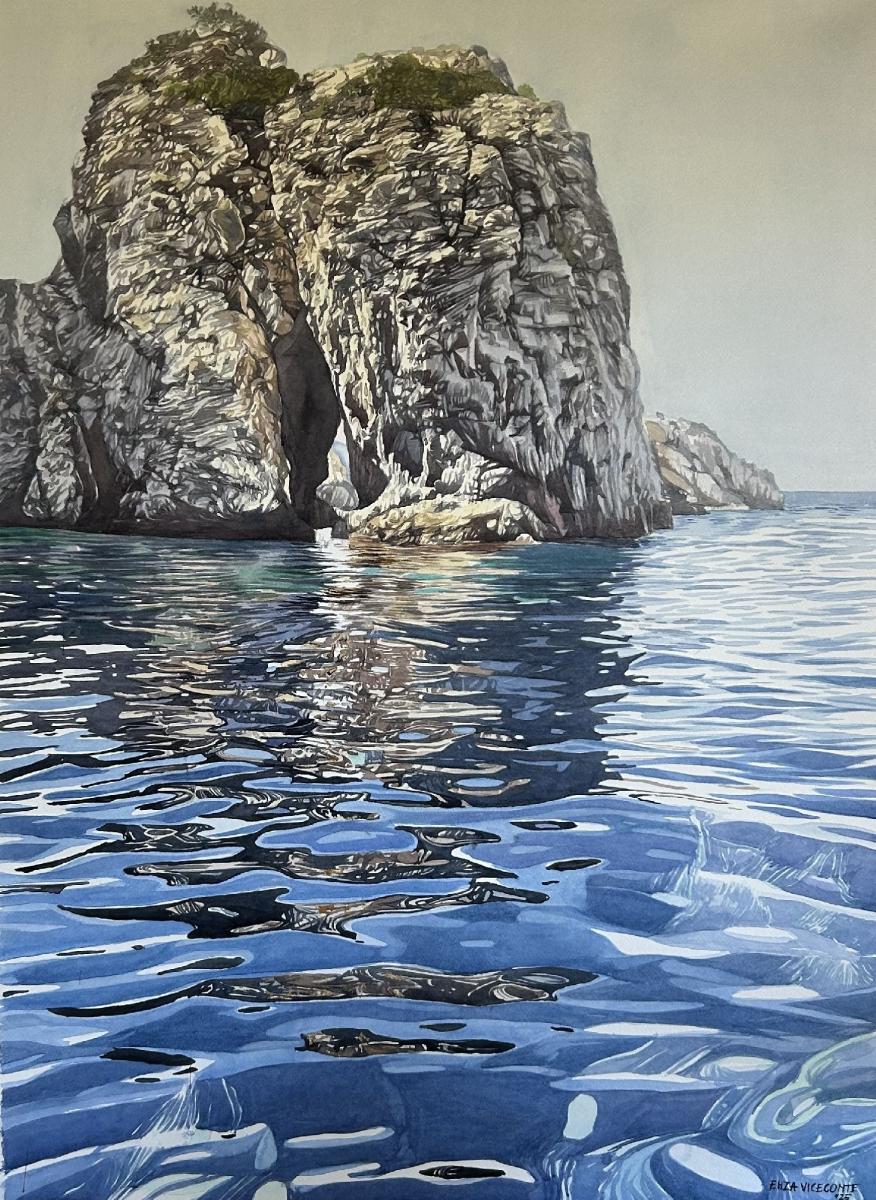 Attraverso l’acquerello indago la luce e la sua capacità di modificare la materia visibile. L’acqua non è solo mezzo tecnico, ma elemento che genera l’immagine: ne determina i confini, la trasparenza, la sospensione. Il pigmento si deposita lentamente e lascia emergere strati di percezione, come onde che non cessano mai di tornare.